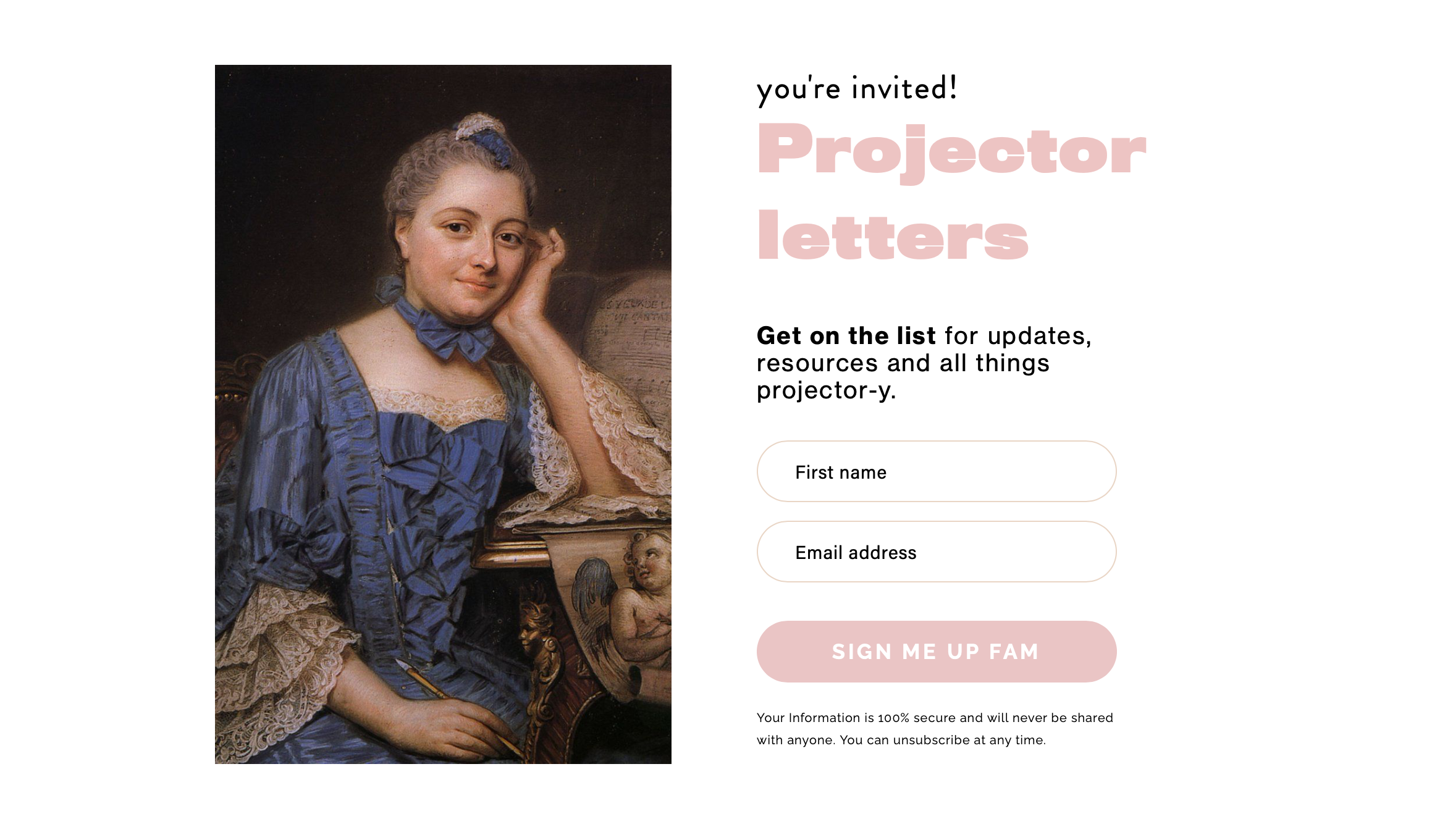 Obvi I’m on a mission to get all Projectors onto email so you can start building, brick by brick (or… digital raven by digital raven) your own little secret digital kingdom where you and your readers love to hang out, gather inspiration, exchange ideas and just have a fun time.